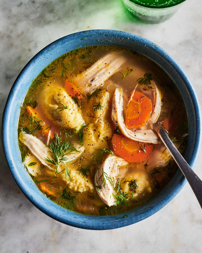 This twist on chicken and dumplings, made with store-bought broth and a rotisserie chicken, is designed for busy weeknights. READ MORE...